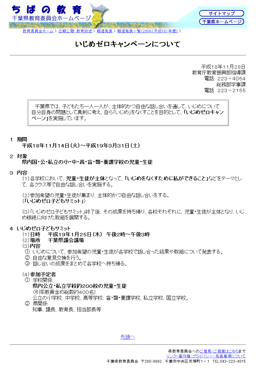 千葉県の教育委員会が突如として企画した「いじめゼロキャンペーン」。