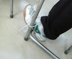 なんと靴紐が机に・・・・・・