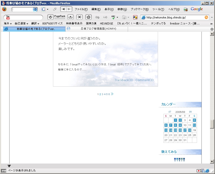 もし、未だに「右のカラム(カレンダーとかがある柱)が記事の下から始まるよ(こんな風になるよ)」という方がいらっしゃいましたら、お手数ですがコメントください。