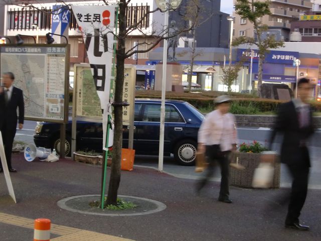 うるさぃし、いちゃもんつけられるのは明らかなので、その場にゐた全候補=民主党小田求と市民ネット金田由希が撤収する羽目に。